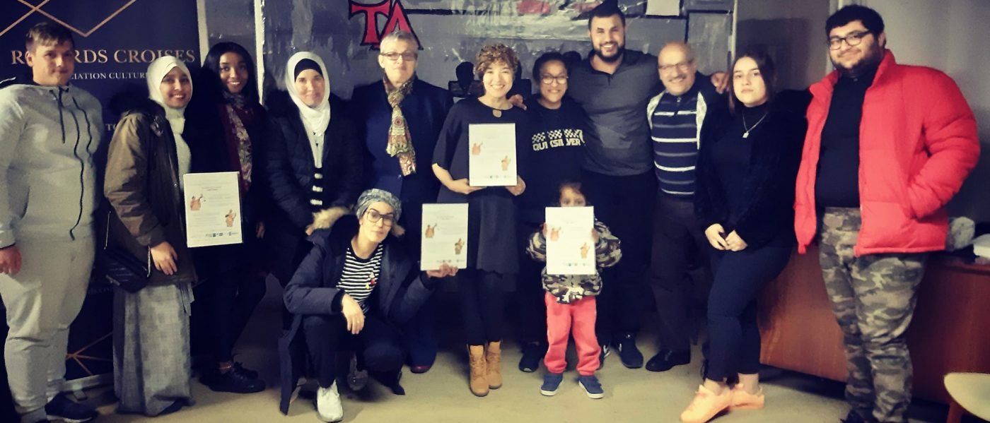 Feusta, artiste rappeur niçois nous a préparé un cours artistique. Usurpation d’identité, oui messieurs, dames, nous nous sommes pris pour des présidents, avocats, vendeurs… Mais je vous rassure, nous sommes revenus à la raison. On a apprit à jouer la tristesse, la colère, la surprise… Et Abdou a clôturé le tout par une poésie, louange à Nissa la bella.